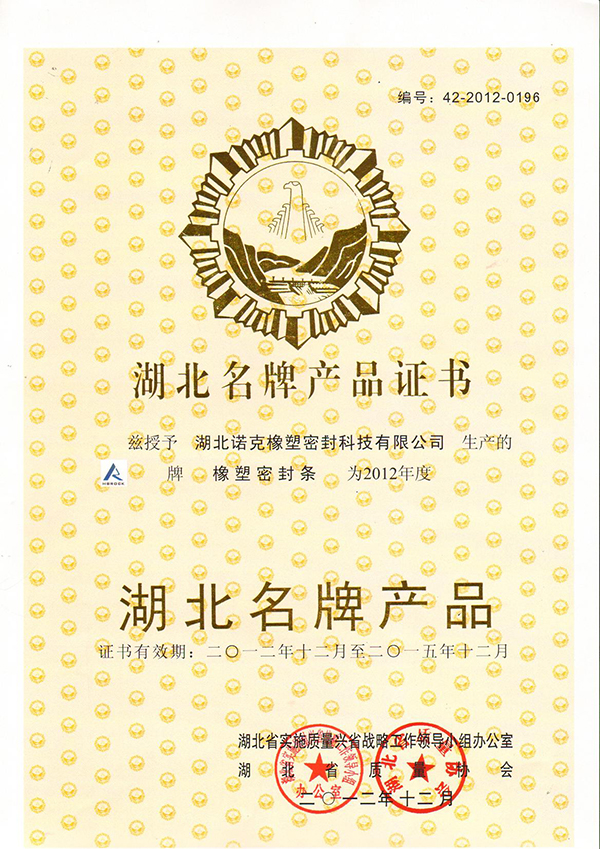 湖北名牌產(chǎn)品證書