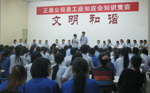 .為了促進(jìn)公司全體一線員工學(xué)習(xí)、掌握崗位應(yīng)知應(yīng)會(huì)知識(shí)和基本的崗位技能、行為規(guī)范,提升一線員工的綜合技能素質(zhì),正奧公司工會(huì)組織生產(chǎn)一線員工,在發(fā)放知識(shí)卡片、進(jìn)行全員書面測(cè)試的基礎(chǔ)上,選拔優(yōu)秀選手于9月14日晚開展了“應(yīng)知應(yīng)會(huì)知識(shí)競(jìng)賽”活動(dòng),本次競(jìng)賽根據(jù)生產(chǎn)工序共選撥7支參賽隊(duì),每隊(duì)由3人組成。通過(guò)必答、搶答、觀眾互動(dòng)等形式,根據(jù)各隊(duì)答題得分情況最終產(chǎn)生一、二、三等獎(jiǎng),公司領(lǐng)導(dǎo)為獲獎(jiǎng)選手們頒發(fā)榮譽(yù)證書和獎(jiǎng)金。